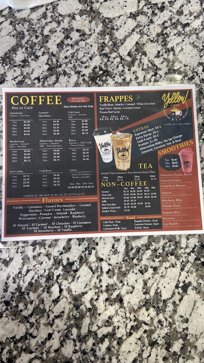 Local favorites are complemented by healthy choices and unique seasonal drinks, making it a one-stop adventure for caffeine, sweet treats, and even shopping. With a commitment to exceptional customer service, Yellow City Grind is not just a coffee shop; it's a community gem where visitors leave with a smile and a sense of belonging.